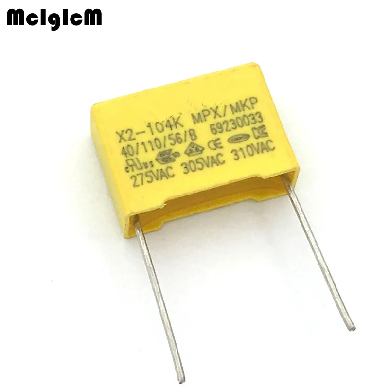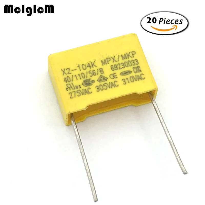 Конденсатор MCIGICM 20 шт. 0,1 НФ конденсатор X2 конденсатор в переменного тока 15 мм X2 полипропиленовый пленочный конденсатор мкФ