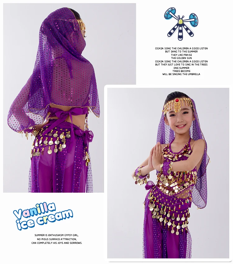 Одежда для танца живота; Детский костюм; Костюмы для танца живота для детей; Костюм для танца живота для девочек; Индийский Костюм Болливуда