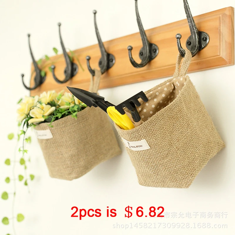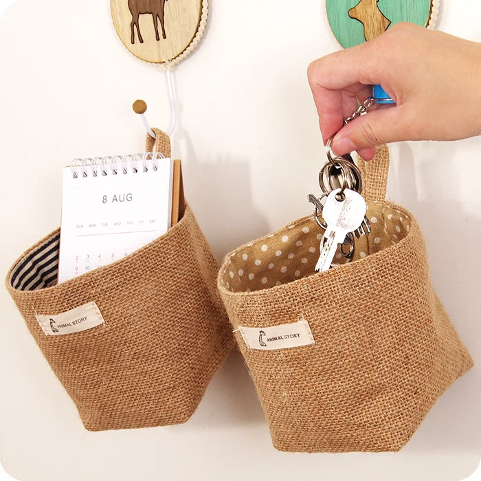 Оптовая продажа Zakka Стильная коробка для хранения джута с хлопковой подкладкой корзина для мелочей мини настольная сумка для хранения подвесные сумки 1 шт.лот 60861