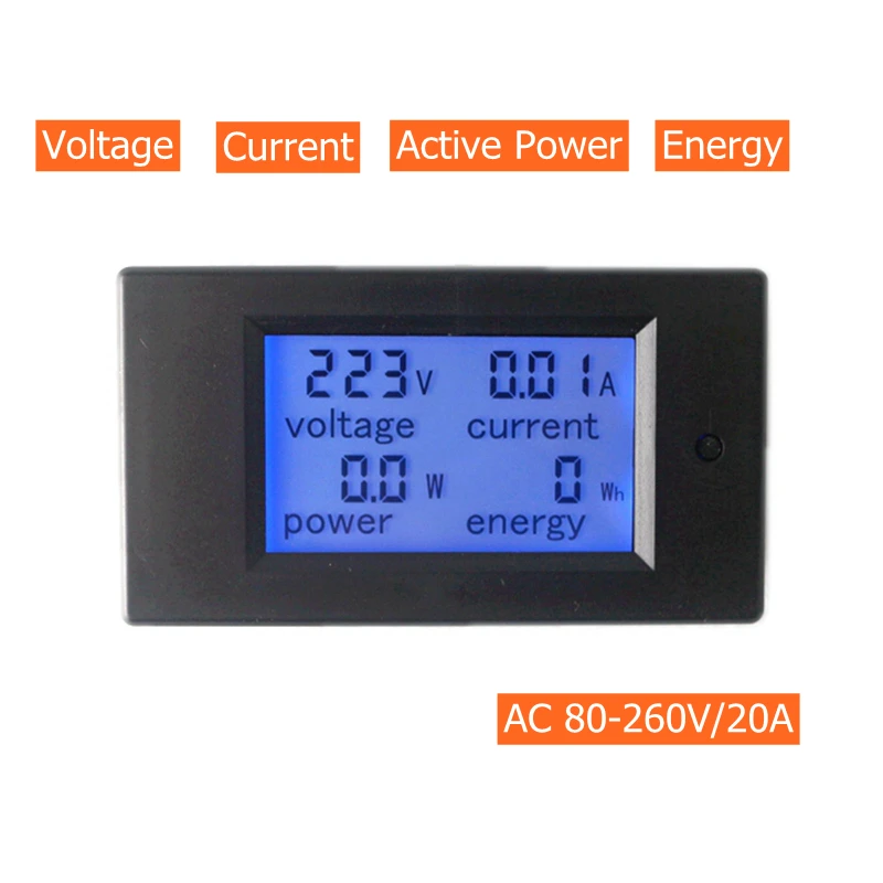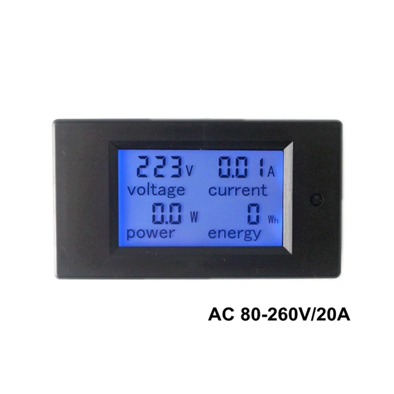 Измеритель напряжения, тока, мощности, энергии переменного тока 80-260 В20 А, вольтметр, амперметр с синей подсветкой, функция сигнализации перегрузки в помещении