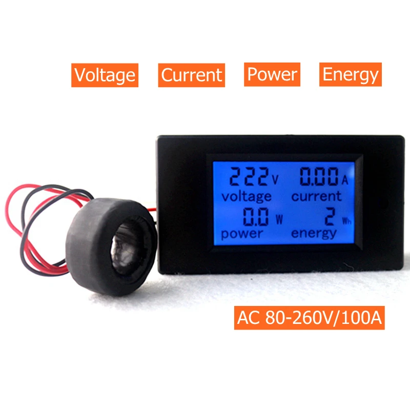 AC 80-260V/100A Вольт Ампер метр AC многофункциональное Напряжение Ампер Энергия тестер с трансформатором тока