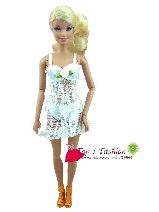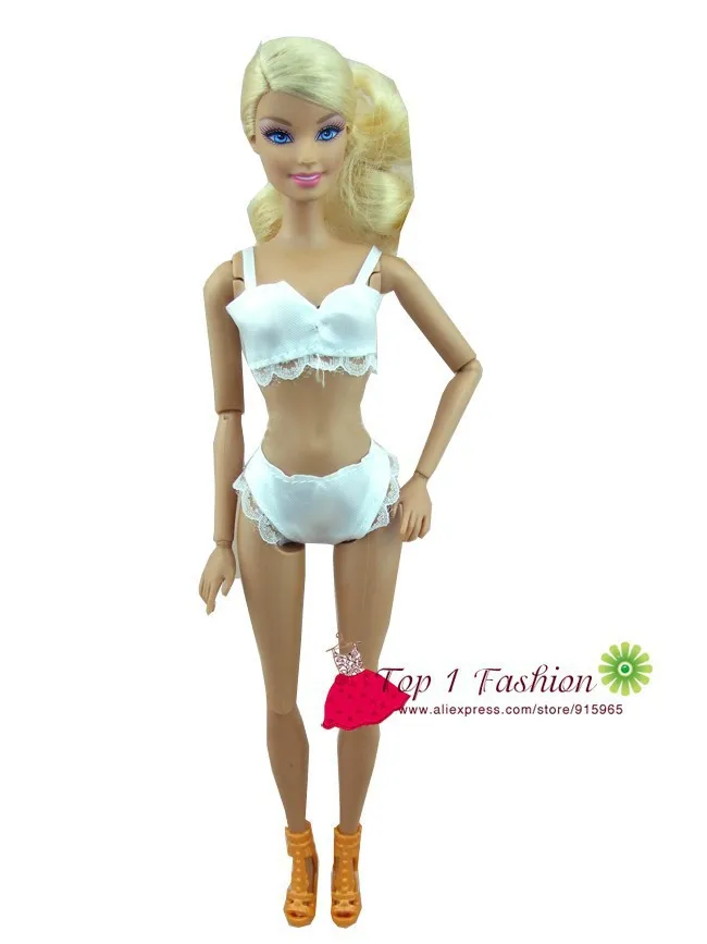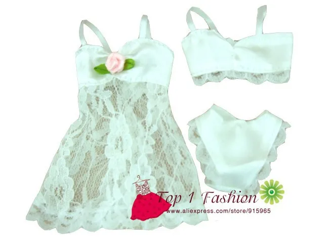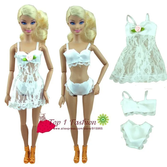 Пикантный пижамный комплект белого цвета, нижнее белье, ночная рубашка, бюстгальтер и нижнее белье, Одежда для куклы Барби, 1 комплект