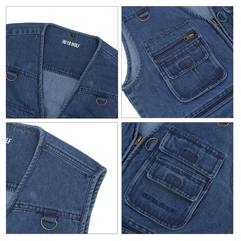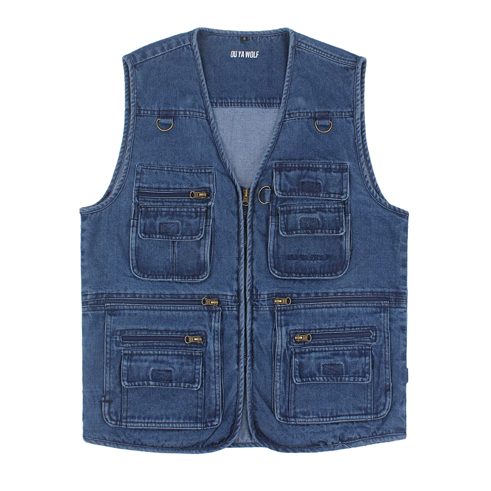 Новая Осенняя весенняя мужская Джинсовая Жилетка Без Рукавов Джинсовая Куртка Мульти-Карманы безрукавка для фотографов путешествий отдыха похода рыбалку и спорта в воздух Размер XL-10XL