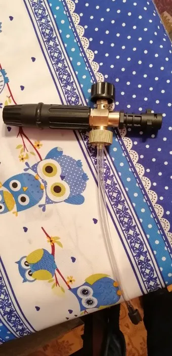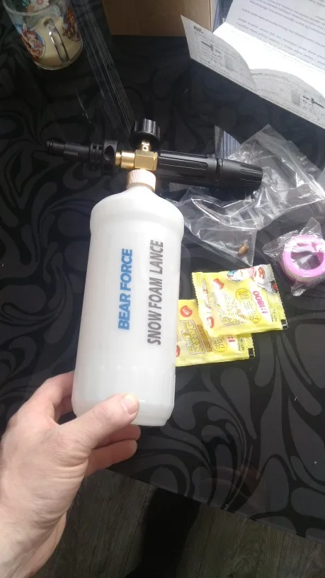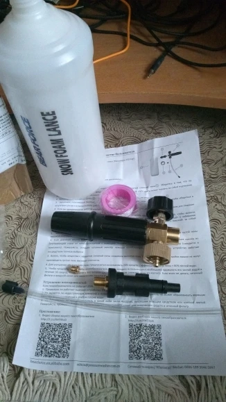 чудова річ, пінить плавно. в комплекті пінна насадка, перехідник під мою мийку, муфлента, запасне сопло і якісь папірці на англійській і російській мовах