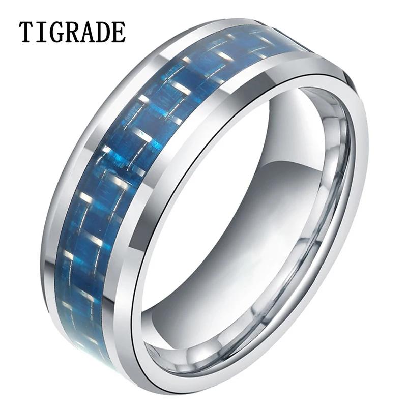 TIGRADE мужское вольфрамовое кольцо 8 мм Карбид серебро синий углеродное волокно инкрустация обручальное кольцо для помолвки кольца для женщин новый дизайн