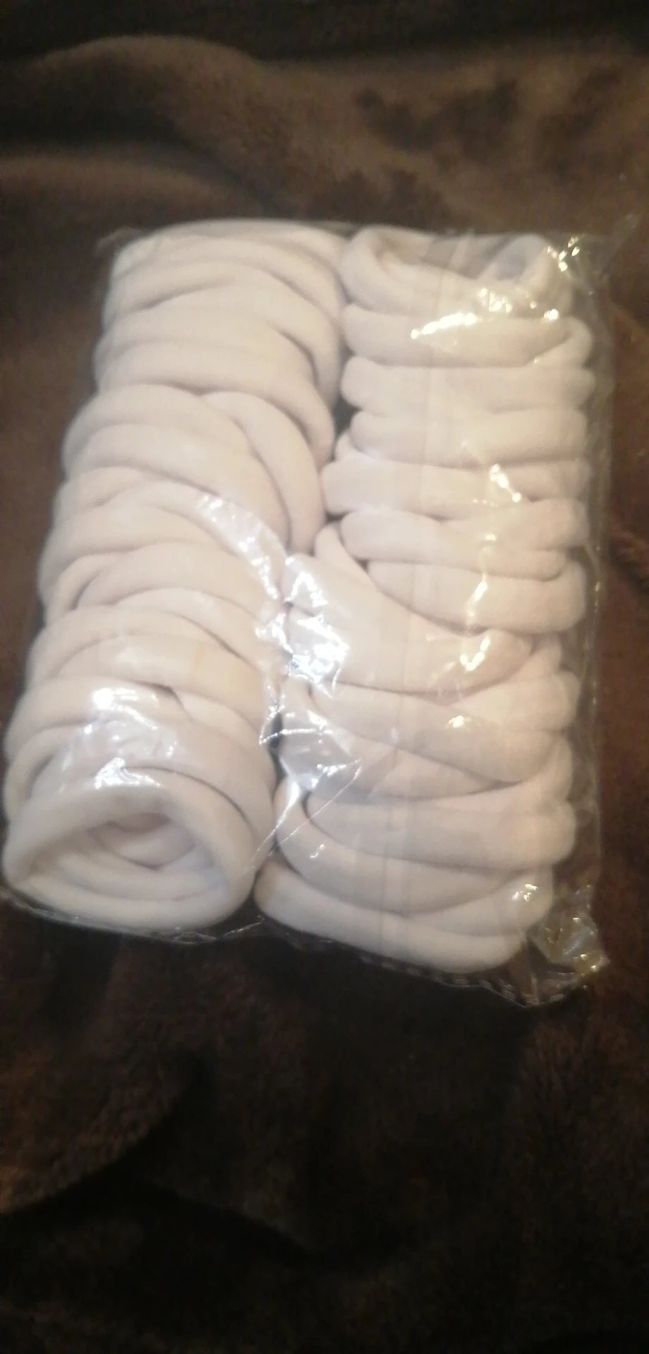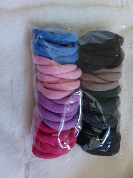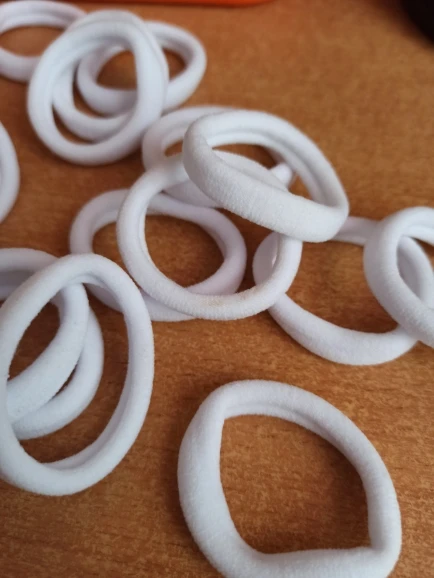 Резинки пришли белые, чистые. Качество супер. Тянуться как надо, не слишком сильно. Волосы средней густоты держат идеально. К покупке рекомендую.