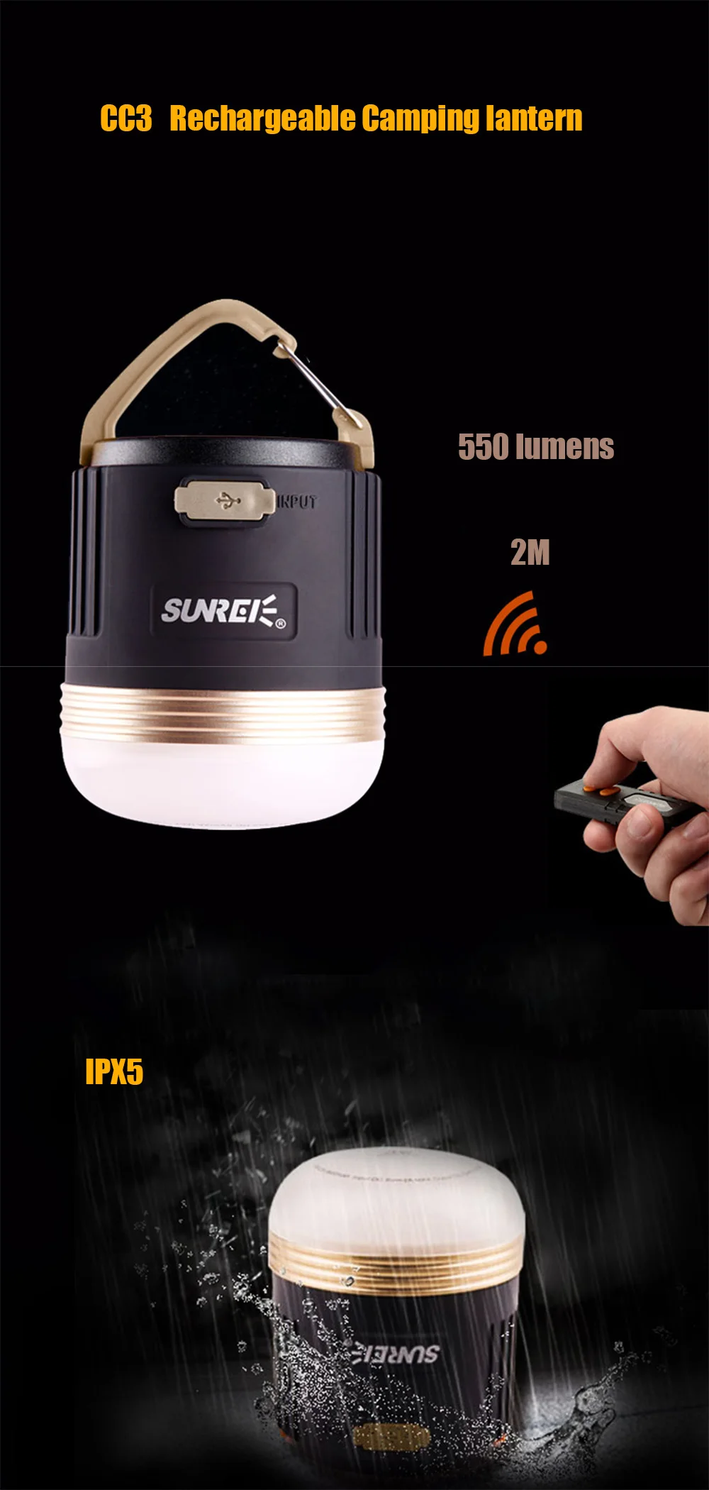 SUNREE лагерь на открытом воздухе CC3550 люменов5 Вт светодиодный перезаряжаемый фонарь для кемпинга