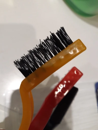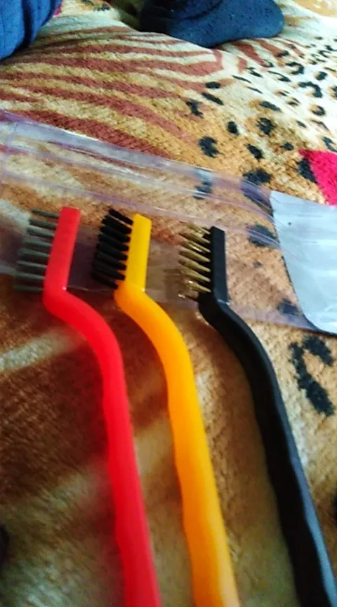 Пришло быстро. Но красные и черные-это настоящие стальные щетинки. Таким образом, я ухожу из своего gqsfornuis. Желтый-это зубная щетка, но с твердой щетиной, которую я уверен, что многие используют