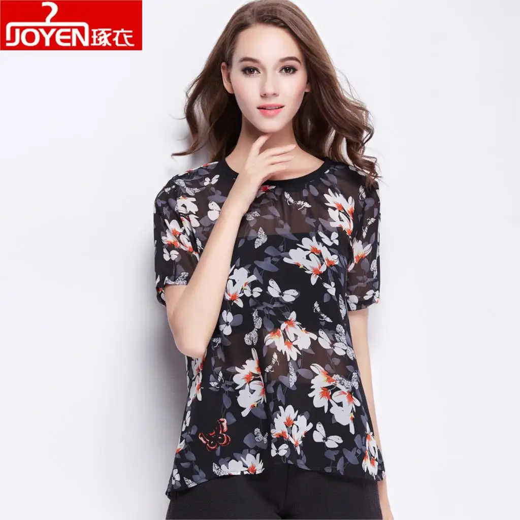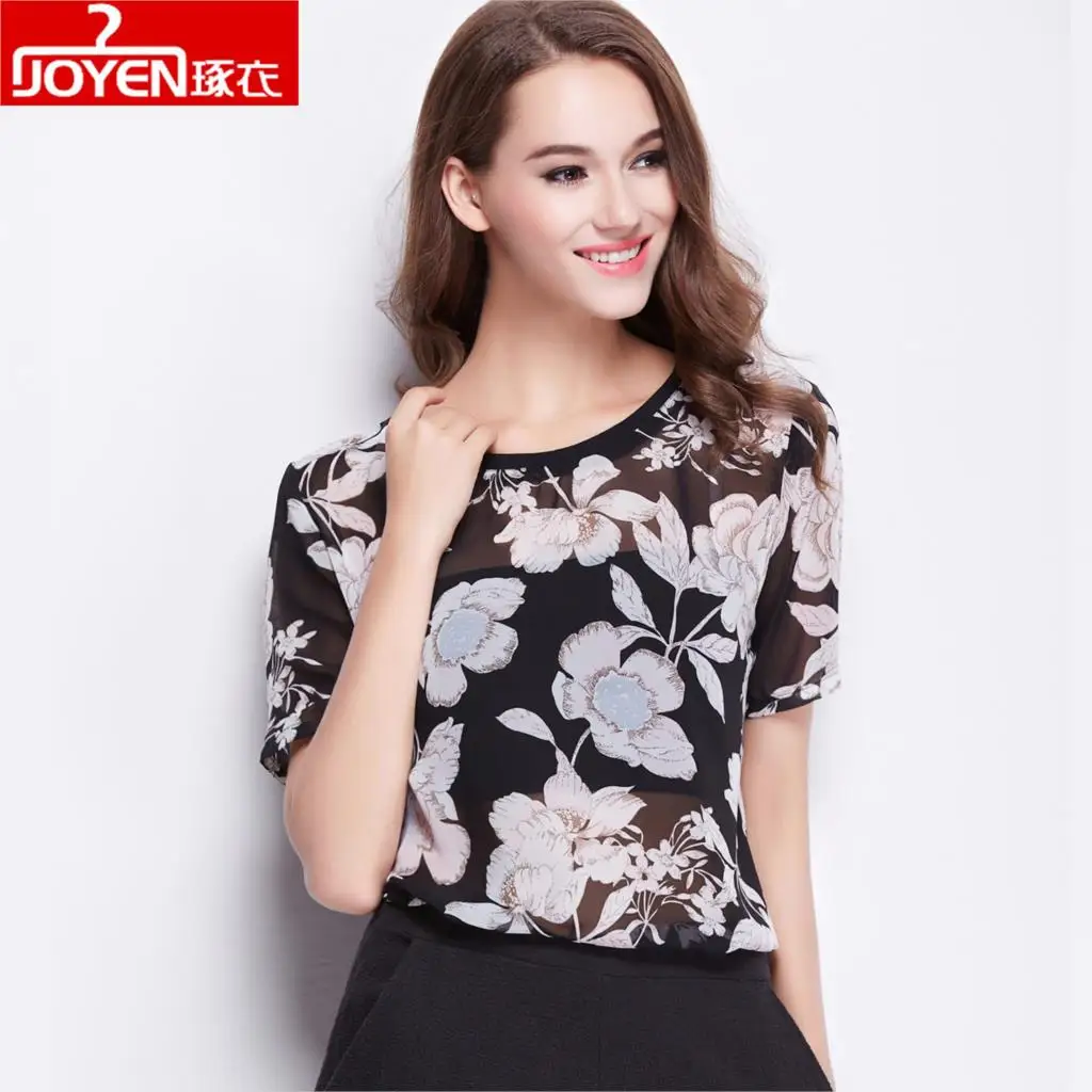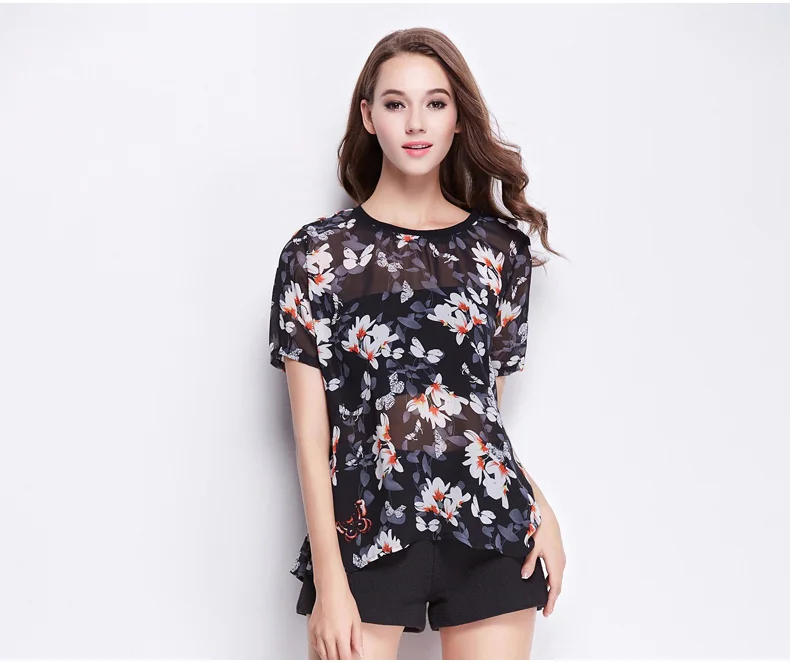 Женская шифоновая блузка с коротким рукавом, рубашка 2017, модная женская одежда с принтом, повседневные блузки, женские топы, блузы, женские рубашки