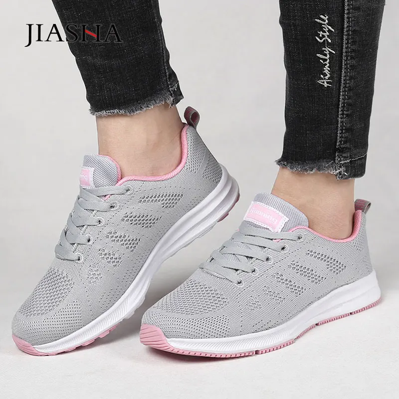 Кроссовки; Женская повседневная обувь; Однотонная обувь; Женская Белая обувь; tenis feminino; Новинка 2020 года; Модные сетчатые женские кроссовки на шнуровке