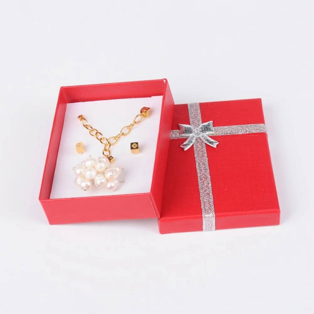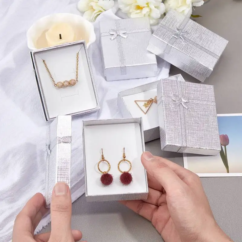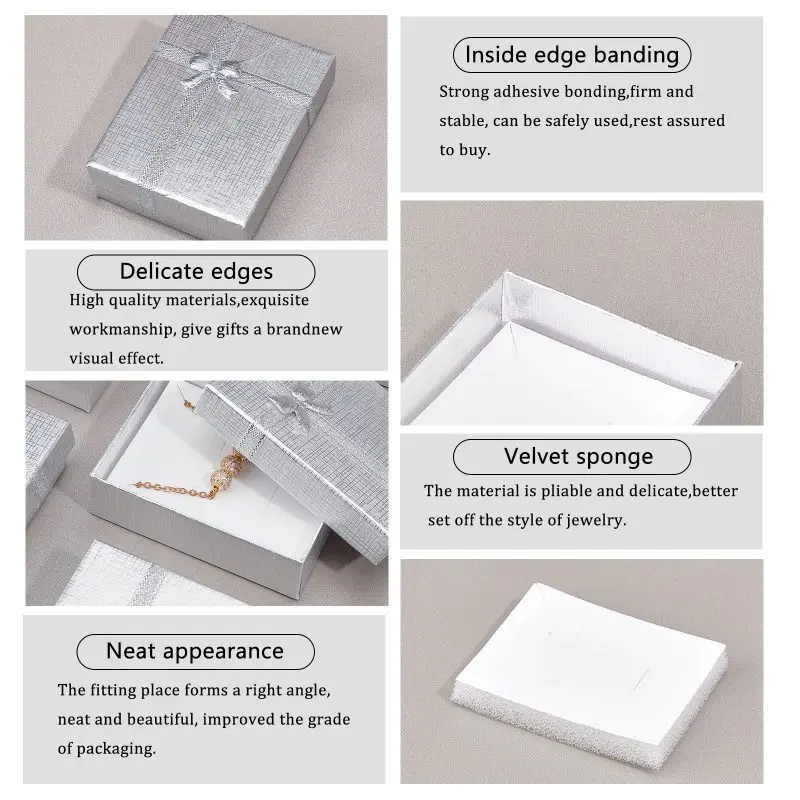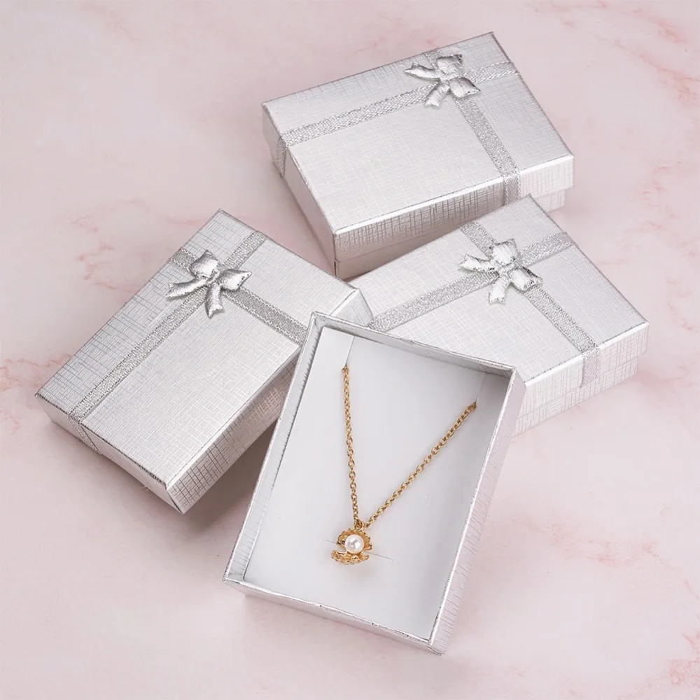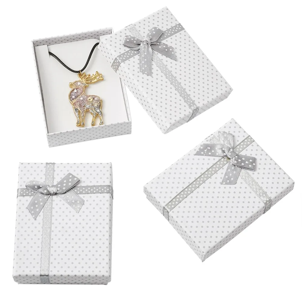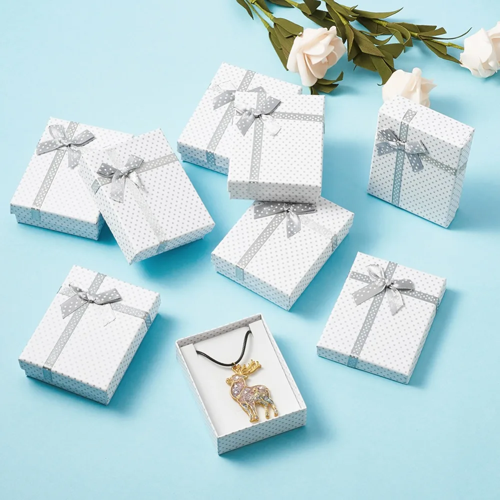 Картонные коробки для ожерелий и подвесок, с бантом снаружи и губкой внутри, размер прямоугольника: 90x70x30 мм, 12 шт.