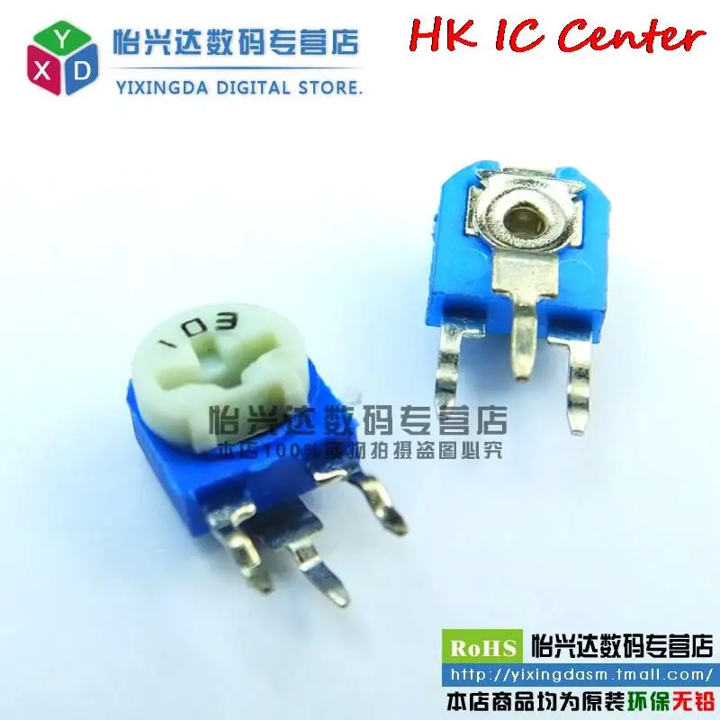 100 шт.лот 103 10 кОм Горизонтальное Регулируемое сопротивление сине-белое регулируемое потенциометры IC Новинка