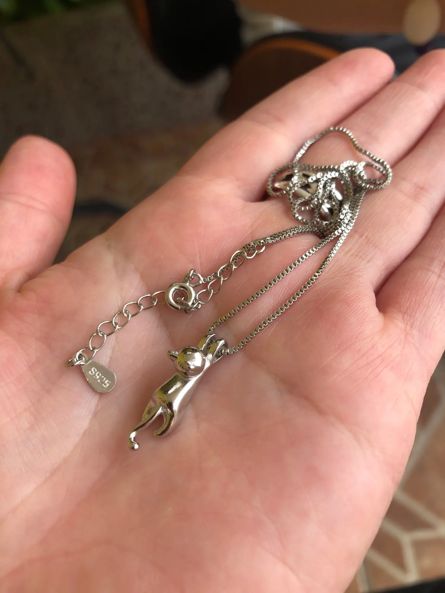 Ожерелье из серебра 925 пробы, подвески и ожерелья с кошками, ожерелье из чистого серебра 925 пробы, ожерелье с котенком, ювелирные изделия