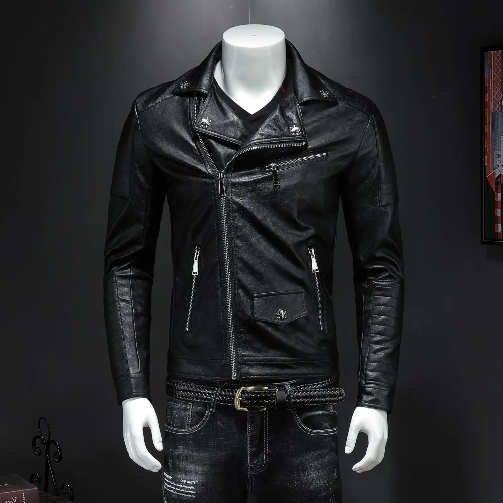 Лидер продаж! Высококачественные Новые весенние модные кожаные куртки для мужчин, брендовые мотоциклетные кожаные куртки с черепом