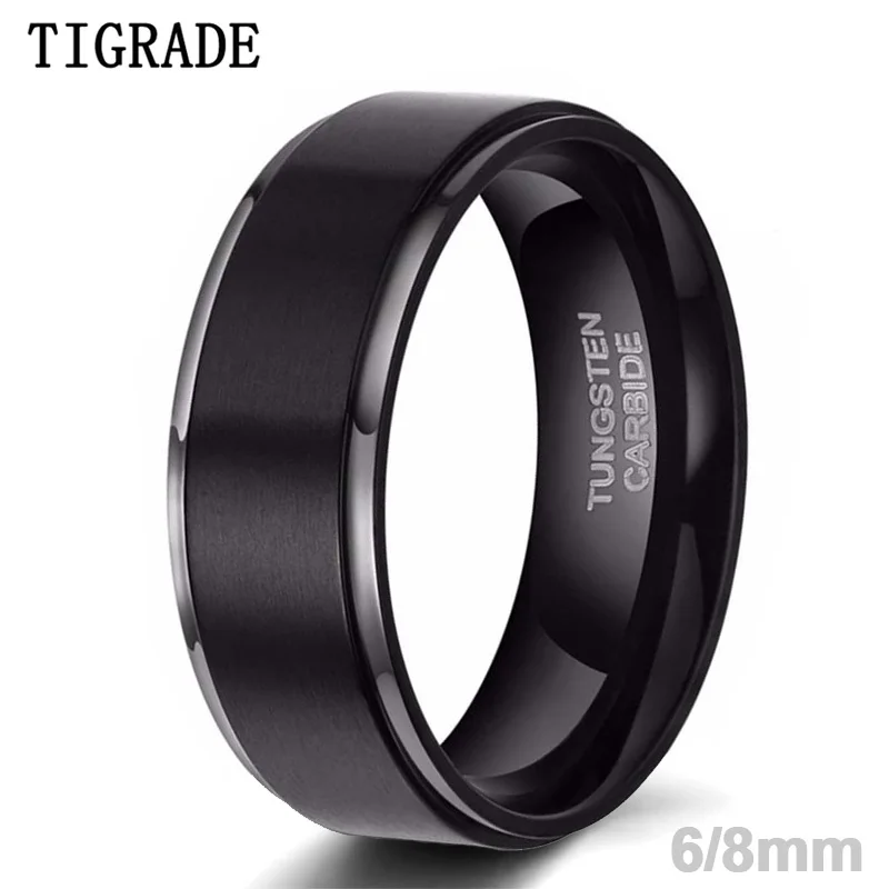 TIGRADE 6 мм черные кольца унисекс из карбида вольфрама полированны...