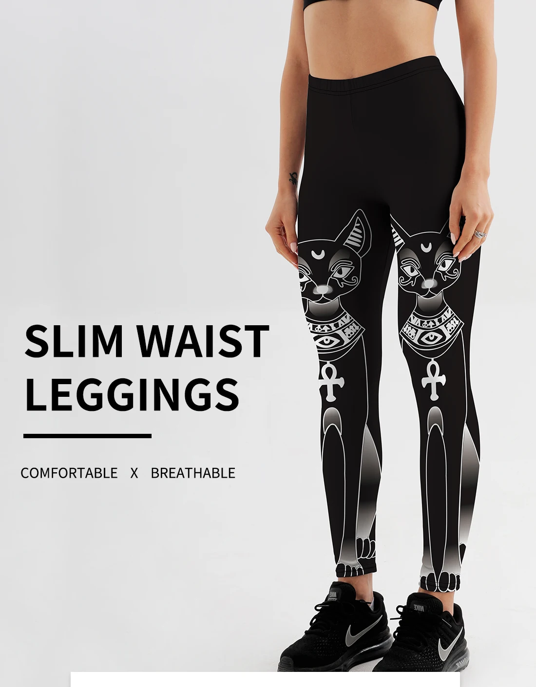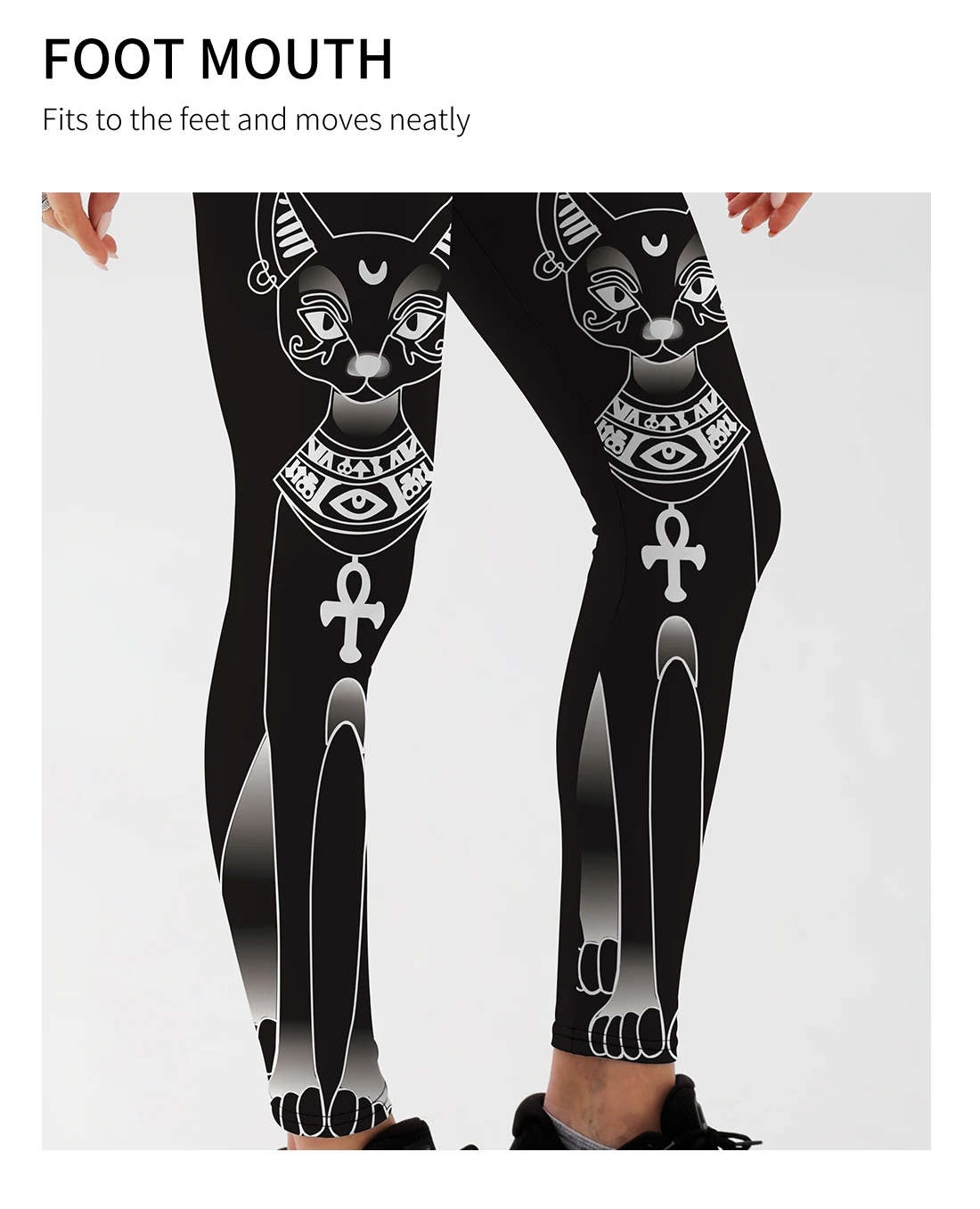 Летние Стильные женские леггинсы, милые черно-белые эластичные брюки с цифровым принтом кота, размера плюс Прямая поставка