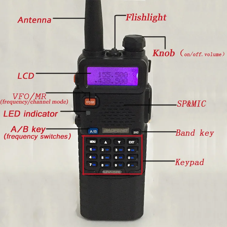 5 Вт FM-радио 128 каналов VHF + UHF 136-174 МГц/400-520 МГц 128 каналов