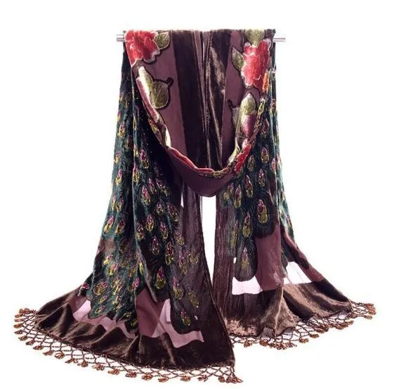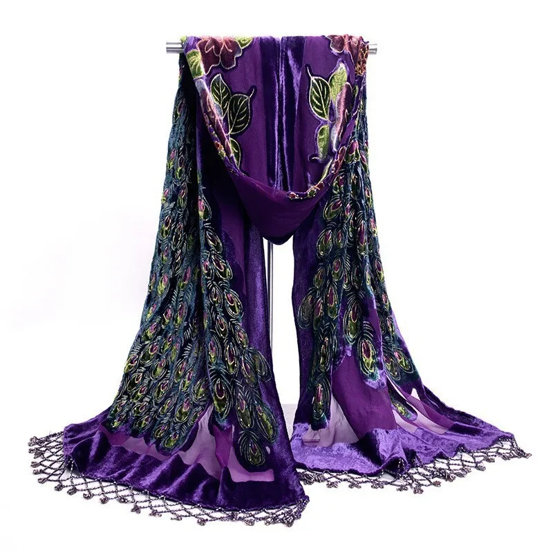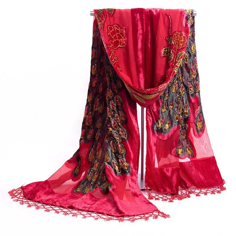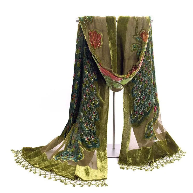 Шарф-накидка Женский бархатный Шелковый с вышивкой бисером, 50x190 ...