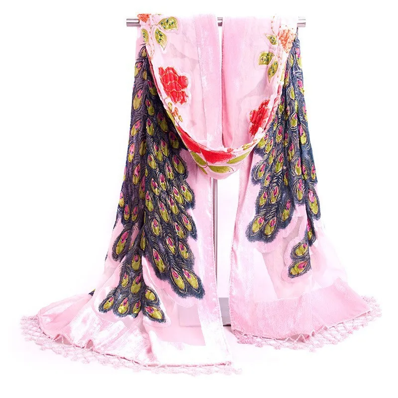 Горячая продажа черный китайский женский бархатный Шелковый шаль с ...