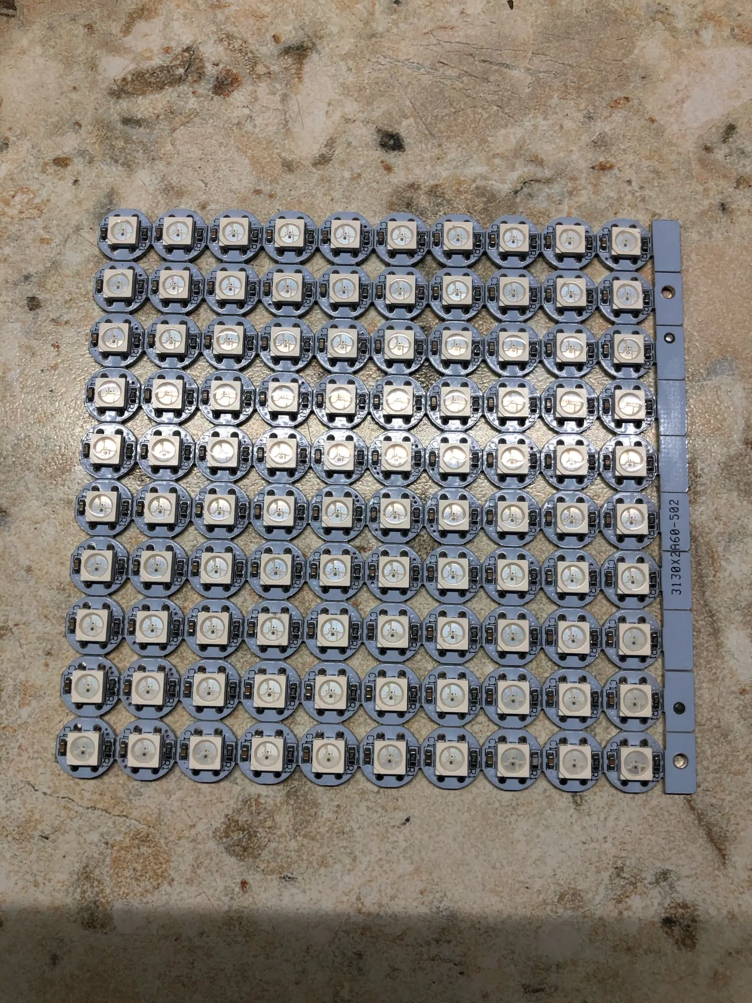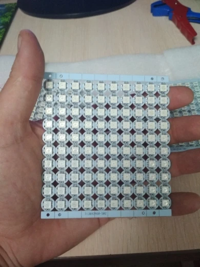 Светодиоды рабочие, уже успел сжечь десяток по дурному стечению обстоятельств. Для себя решил, что выгодней купить ленту 60 на метр и порезать на пиксели..