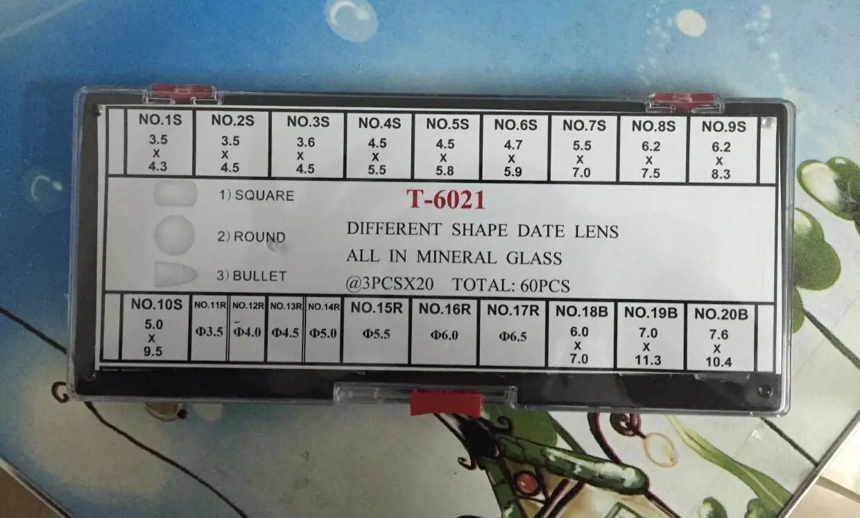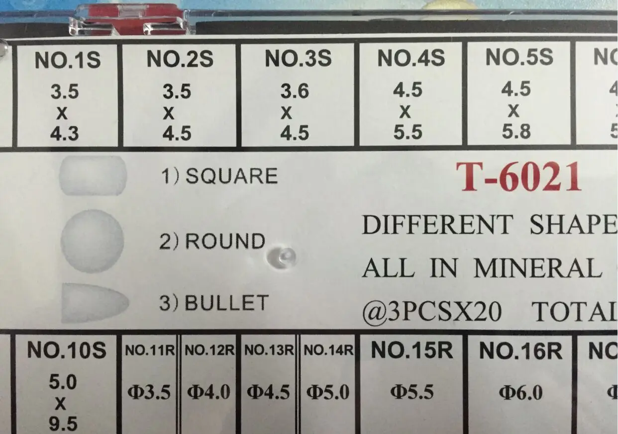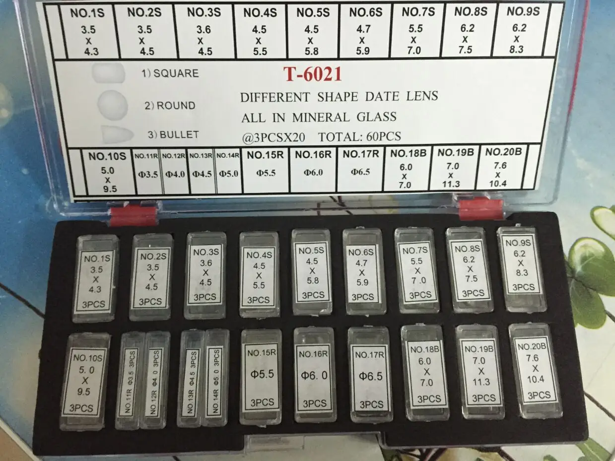 Бесплатная доставка, 1 набор, T-6021 линзы разной формы, все из минерального стекла, 60 шт.