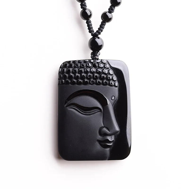KYSZDL Прямая поставка, натуральный обсидиановый камень, топ, модный хрустальный кулон, голова Будды, ожерелье, кулон, подарок для мужчин и женщин $8,99