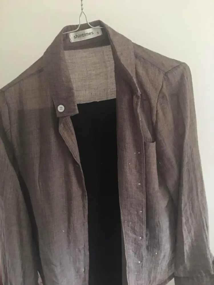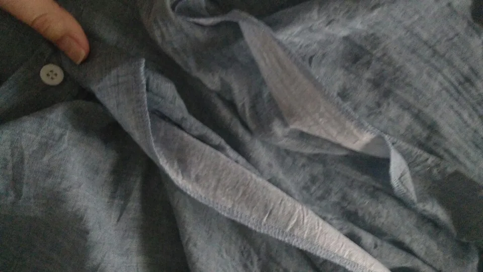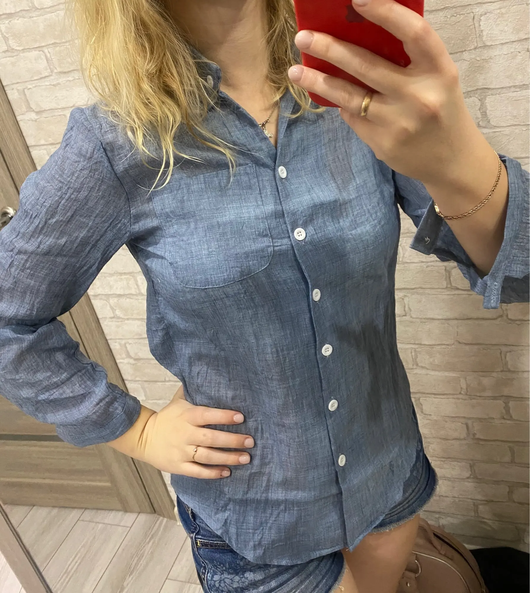 Норм. Пуговки от воротничка долой... Серый цвет немного просвечивает. Рубачка немного липнет к телу