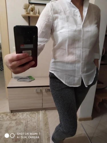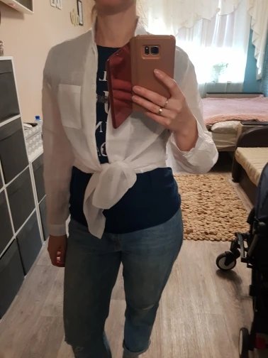 Понравилась ткань - мягкая, приятная к телу. Отдельно хочу отметить то, что пришла именно та блузка, которую мы видели на фото. Из недочетов только одно - прорези для пуговиц не сделаны, но не вижу в этом сложности. Спасибо продавцу!