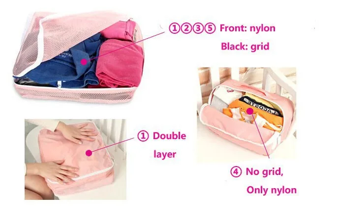 Цвет: розовый, синий, красный, серый (Пожалуйста, сообщите нам цвет по alimessage, или мы вышлем вам случайный)Размер пять пакетов:• 1 отделение: 37*30*14 см/14,6*11,8*5,5 дюймовПакет 2: 29*19*11 см/11,4*7,5*4,3 дюймовВ полоску; 3 вещи: 37*27*7 см/14,6*10,6*2,8 дюймов4: 31*27*7 см/12,2*10,6*2,8 дюймовСпальный мешок 5: 26*20*7 см/10,2*7,9*2,8 дюймов