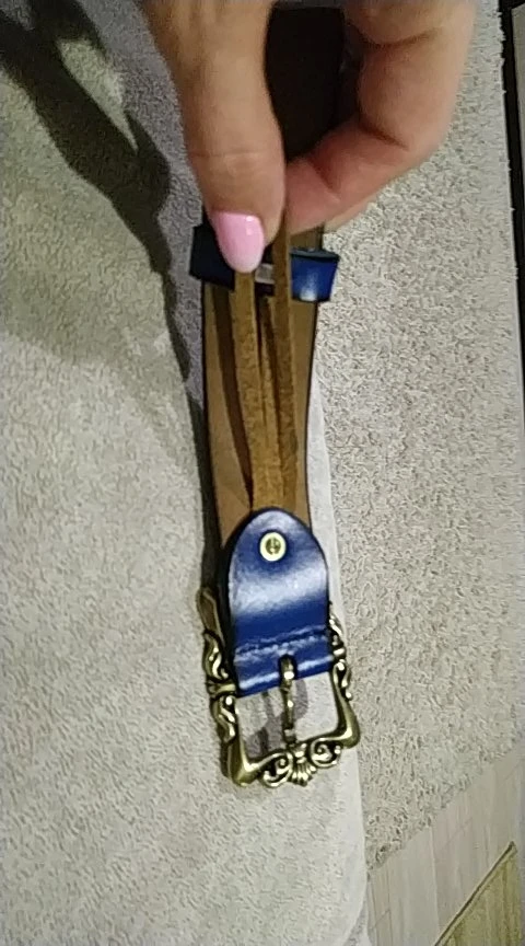 Ремень офигенный! Цвет как на картинке - глубокий синий. Качество на 5+. На обратной стороне ремня специальный "держатель" для другой специальной штучки (не знаю как назвать)))). Но очень удобно, потому что именно это теряется на всех ремнях. В подарок продавец положил браслет-ниточку (ерунда, но приятно).