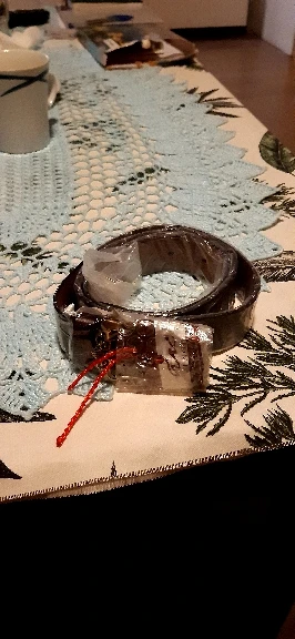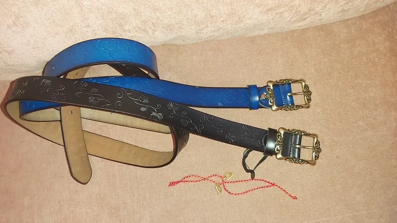 Пояса получила через месяц. На вид симпатичные, с хорошей прядкой но не кожа, кожу всегда выдаёт запах, а здесь синтетический запах, даже внутренних часть пояса не натуральная. Продавец положил браслеты , красная нитка с сердечком.