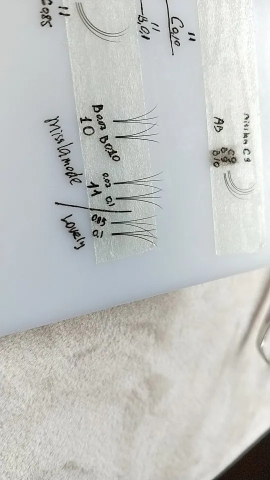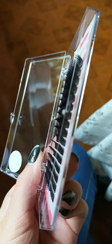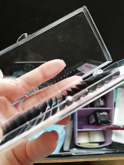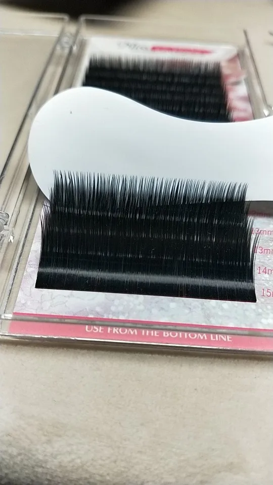 ресницы пришли относительно быстро. изгиб соответствует. но оч. жаль, что волокно иссиня чёрное. моя клиентка блондинка, любит такой изгиб и ни в коем случае, что бы они на солнце отдавали синевой. только чёрный цвет! я расстроилась, немного. ведь, я думала, что у всех изгибов и толщин тут чёрный цвет, одно волокно. но цвета розняться... для примера взяла две палетки, с разным чёрным.