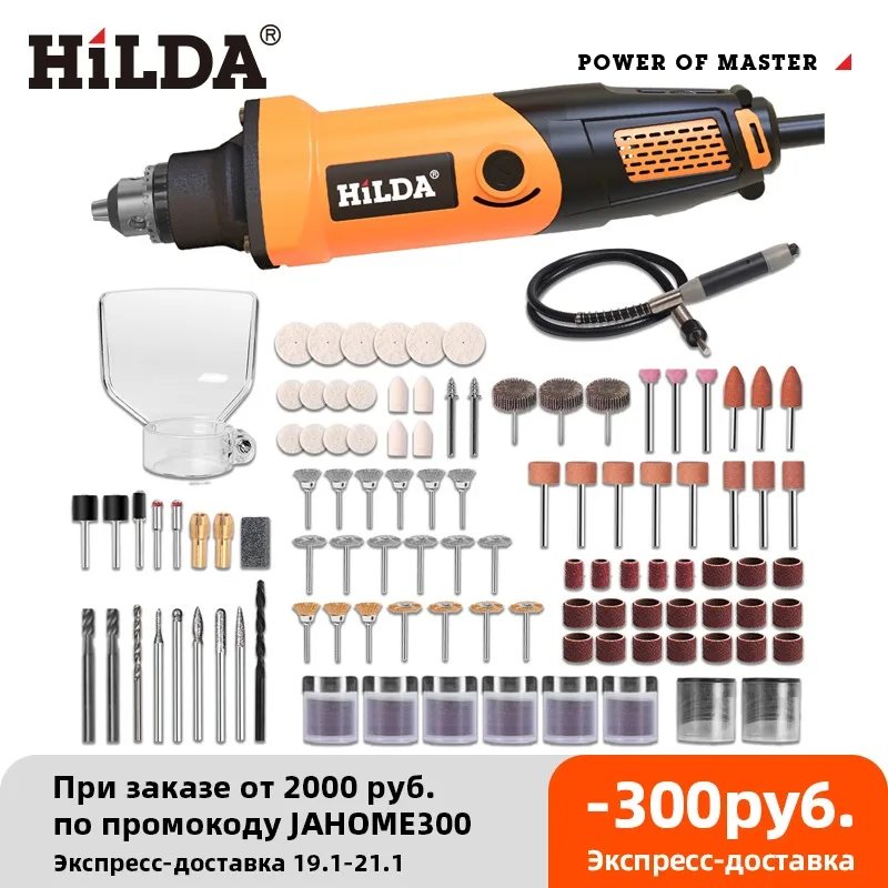 Электрическая дрель HILDA, мини-дрель для шлифовки, вращающиеся инструменты Dremel, гравировальная машинка, гравировальная ручка с аксессуарами