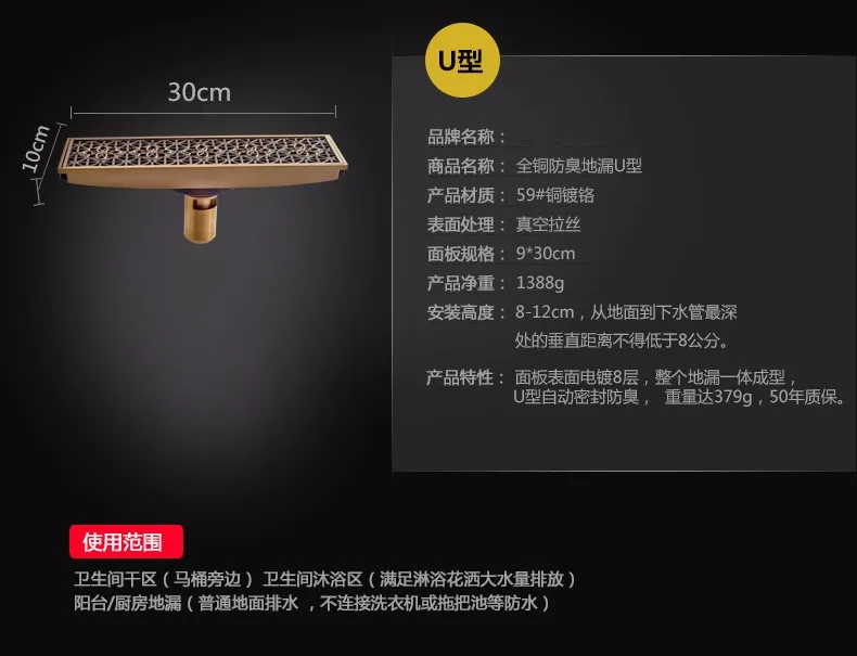 Слив 10*30 см евро античный латунный художественный резной сливной чехол для пола Сливная крышка для душа аксессуары для ванной комнаты фильтр DL8547