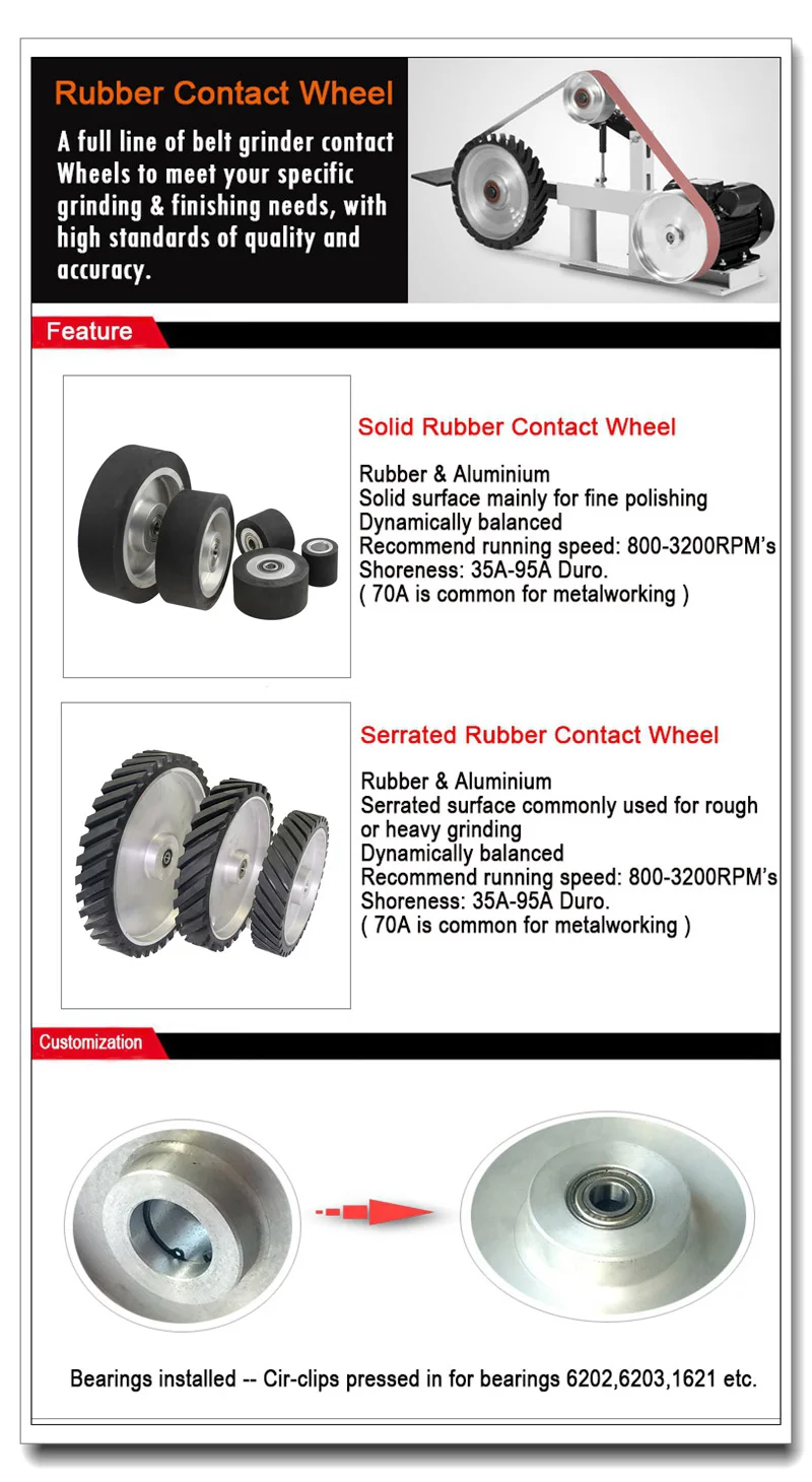 200*75mm Serrated Rubber Contact Wheel Dynamically Balanced Belt Grinder Backstand Idler Wheel