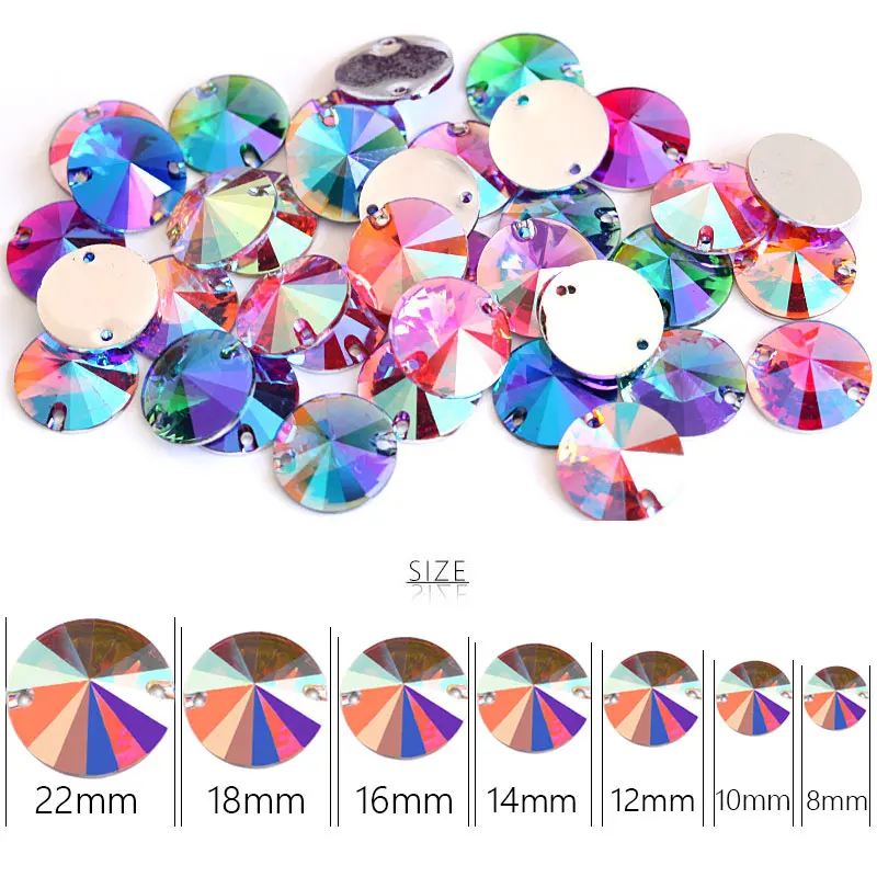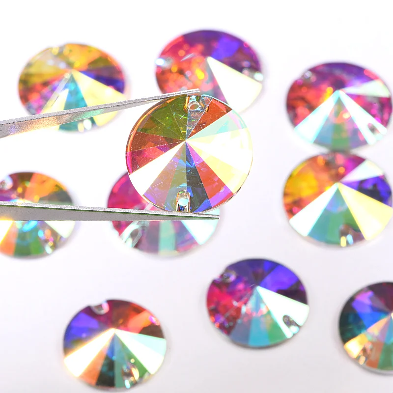 Круглые стразы Rivoli из смолы для шитья, стразы из смолы для шитья, Кристальные круглые бусины с плоской спинкой с 2 отверстиями для платья B2628