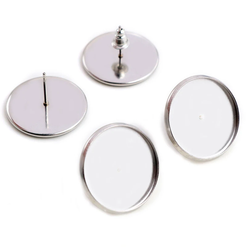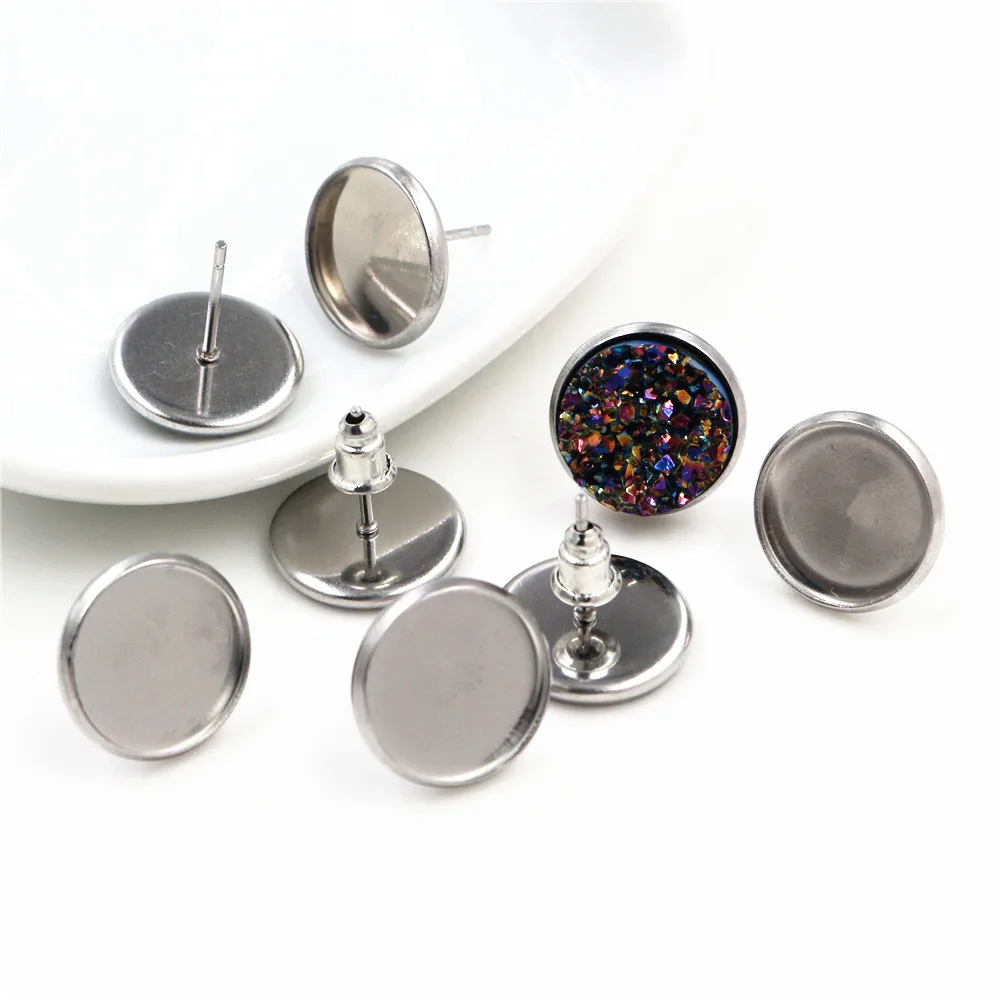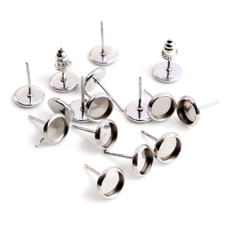 Серьги-гвоздики из нержавеющей стали 681012 мм-20 мм, пустое основание, подходят для стеклянных кабошонов 6-20 мм, пуговиц, заклепок для сережек