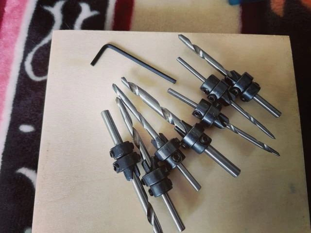 Доставка быстрая. На этом все плюсы закончились. Сверла плохие, дерево не сверлят. Заменил на свои, зенкер забивается. Установить глубину зенкования не возможно, стопорное кольцо крепится хорошо только в одном положении. К покупке не советую.