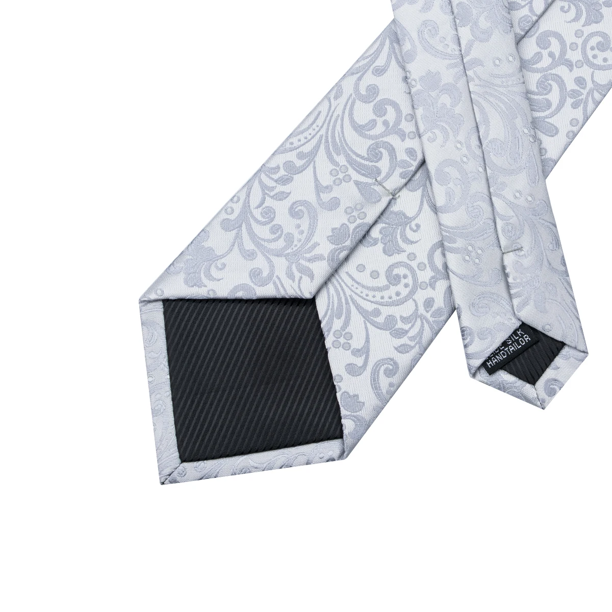 C-1169 2019, цветочный мужской галстук, набор серебряных и белых жаккардовых шелковых галстуков, карманные Квадратные запонки, 8,5 см, классические галстуки для мужчин