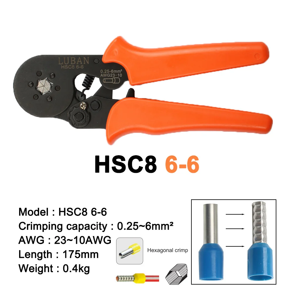 Саморегулируемые обжимные клещи мини HSC8 6-6B HSC8 6-6A, 0,25-6 мм, обжимные клеммы, мульти HSC8 6-6