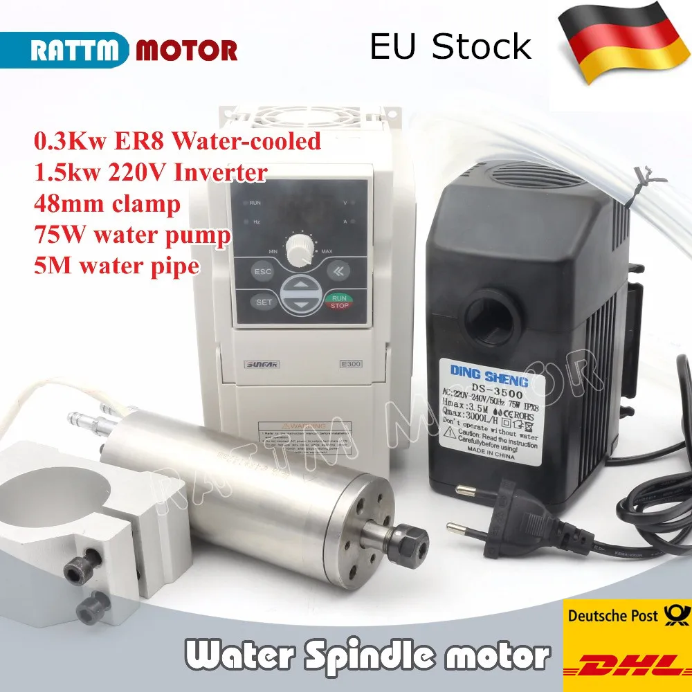 Комплект водяного охлаждения шпинделя с ЧПУ, 300 кВт60000 Вт, ER8, 75 в, а, обмин, с инвертором кВт, VFD, зажимом 48 мм и насосом для токарного станка