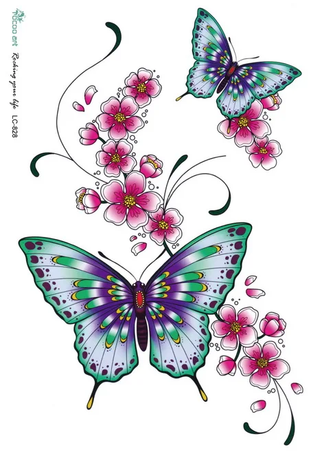 Временные татуировки, наклейки 3D большого размера, сексуальные, с бабочкой, для тела, поддельные татуировки для женщин, 21x15 см, LC-828