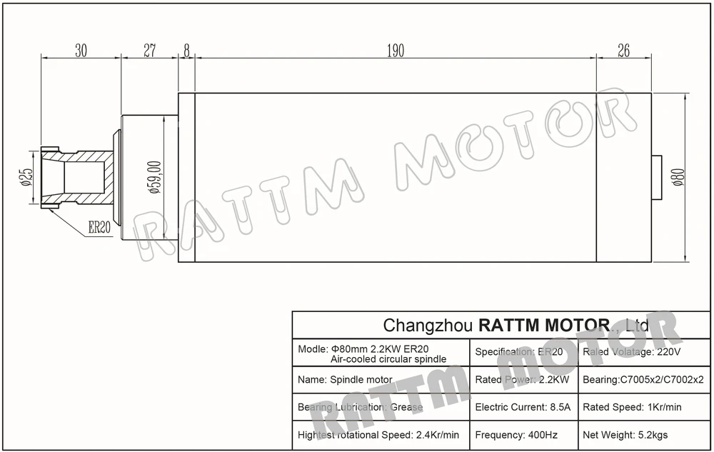 1x2,2 кВт шпиндель с воздушным охлаждениемER20
