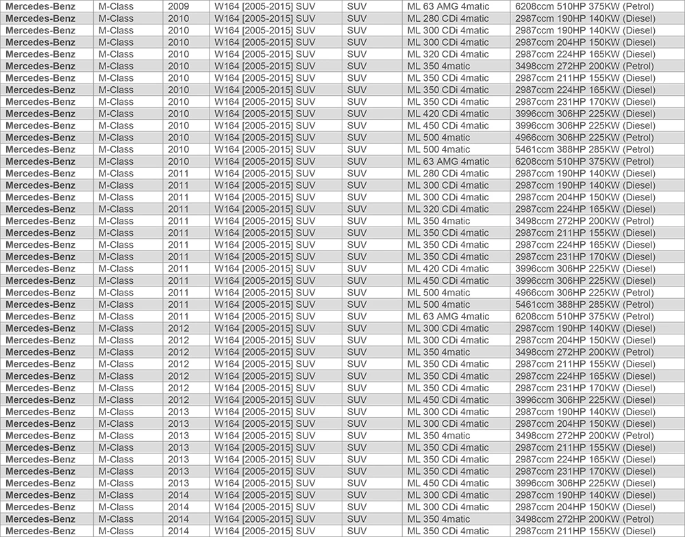 ГодGL320 GL350 GL420 GL450 GL500 ML63 AMG ML280
