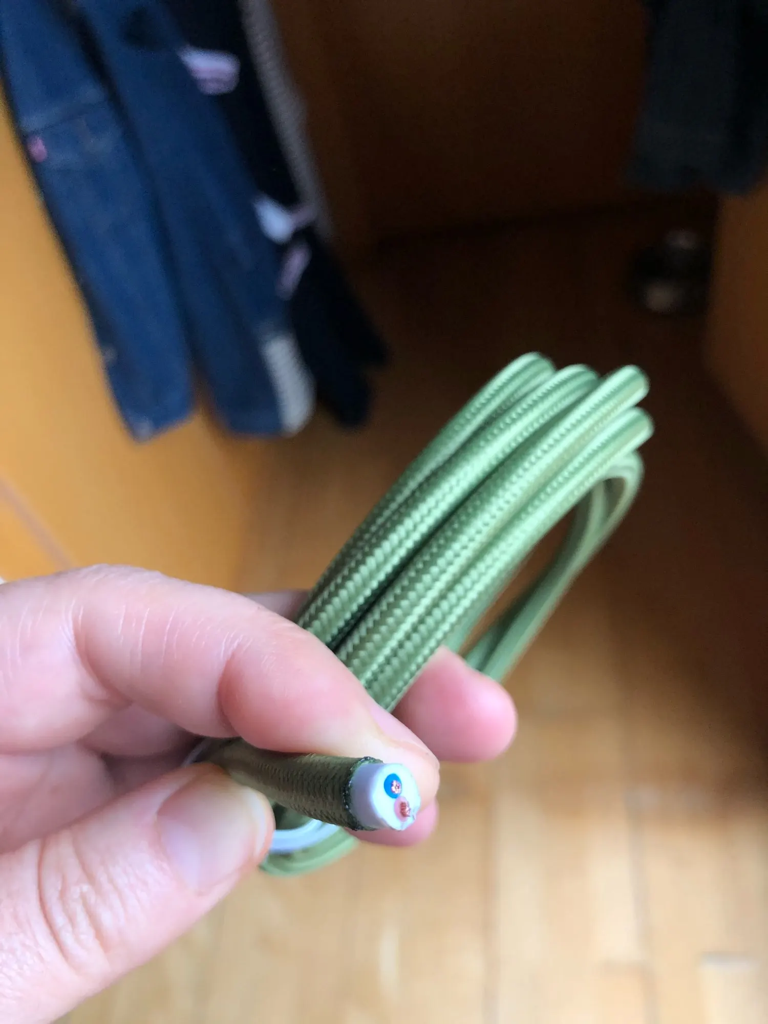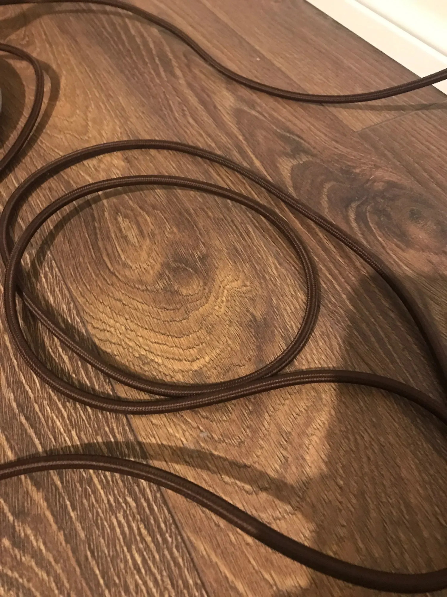 Все как на картинке. Короче это провод ПВС в тканевой оплетке. То же самое можно сделать самому из обычного провода и оплетки бельевой веревки.