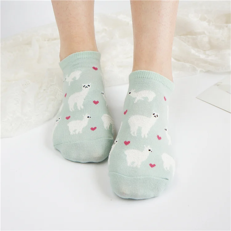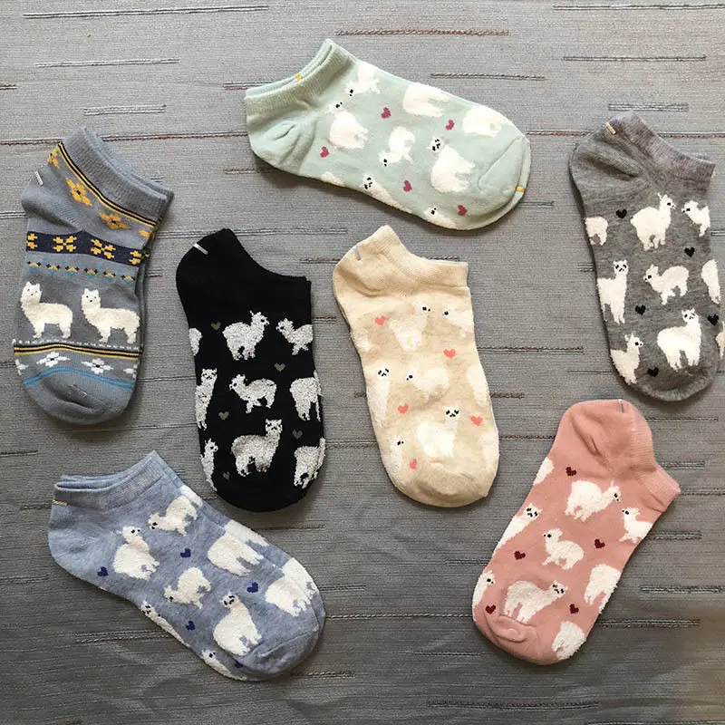 Носки Короткие хлопковые с невидимой высотой до щиколотки, с изображением милой альпаки, сердец, животных, фермы, зоопарка, ламы, пушистой овцы