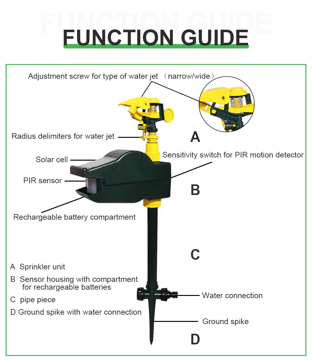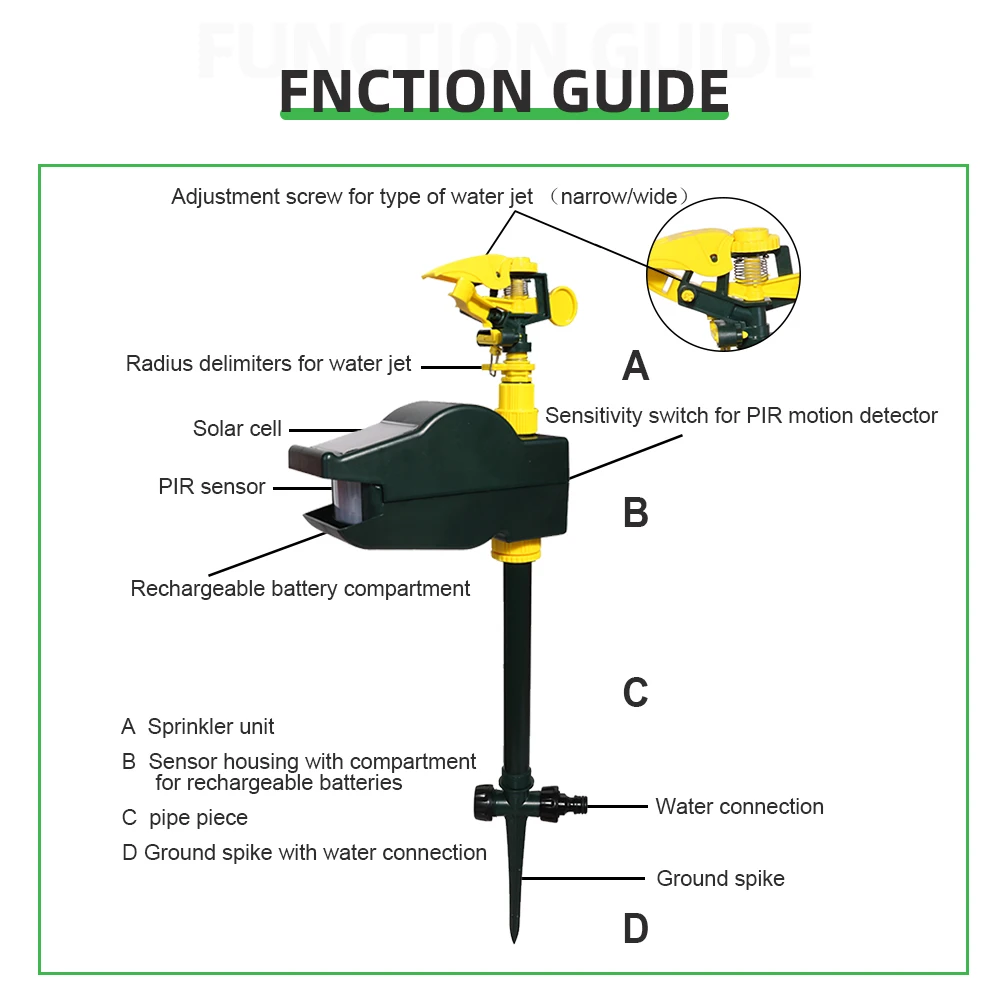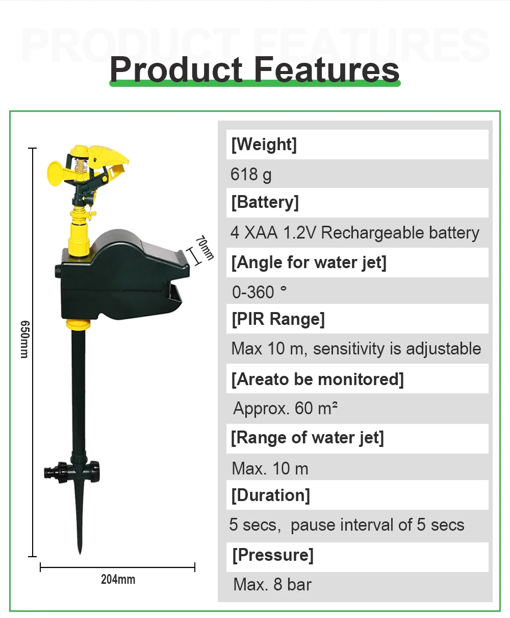 Мощный экологически чистый распылитель, активируемый движением на солнечной батарее, Репеллент для защиты от вредителей в саду #31004
