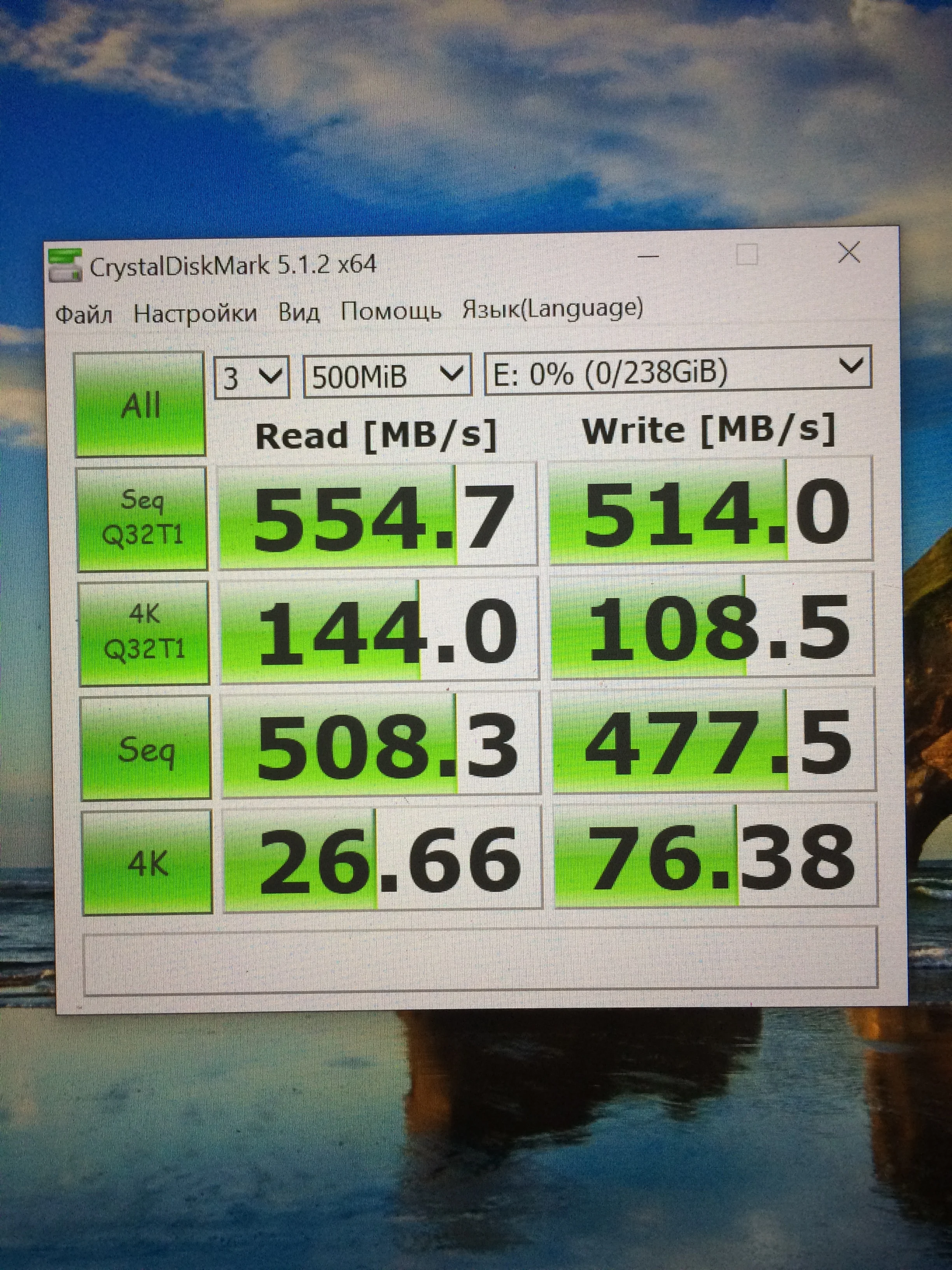 Я пришел в прекрасном состоянии все очень хорошо и передача 550 Мб/сек