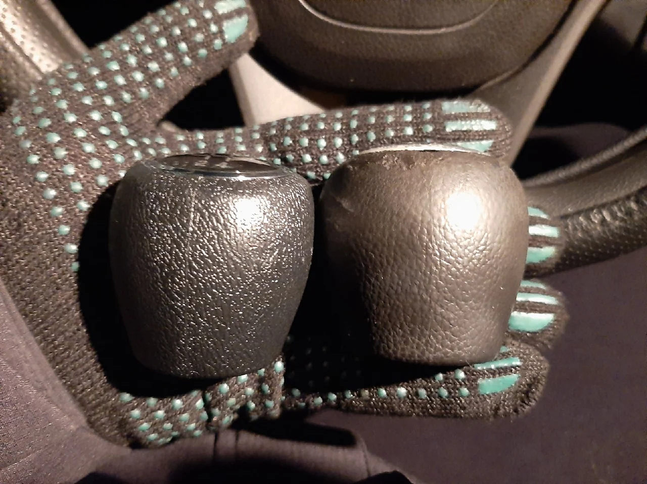 Товар соответствует описанию продавца. Ручка тяжелая, пластмасса приятная - полумягкая, рельефная, похожа на пластмассу передней панели. Сделано качественно. Пока не устанавливал, но так как внутренняя втулка пластмассовая, возможно будут проблемы зафиксировать не рычаге.