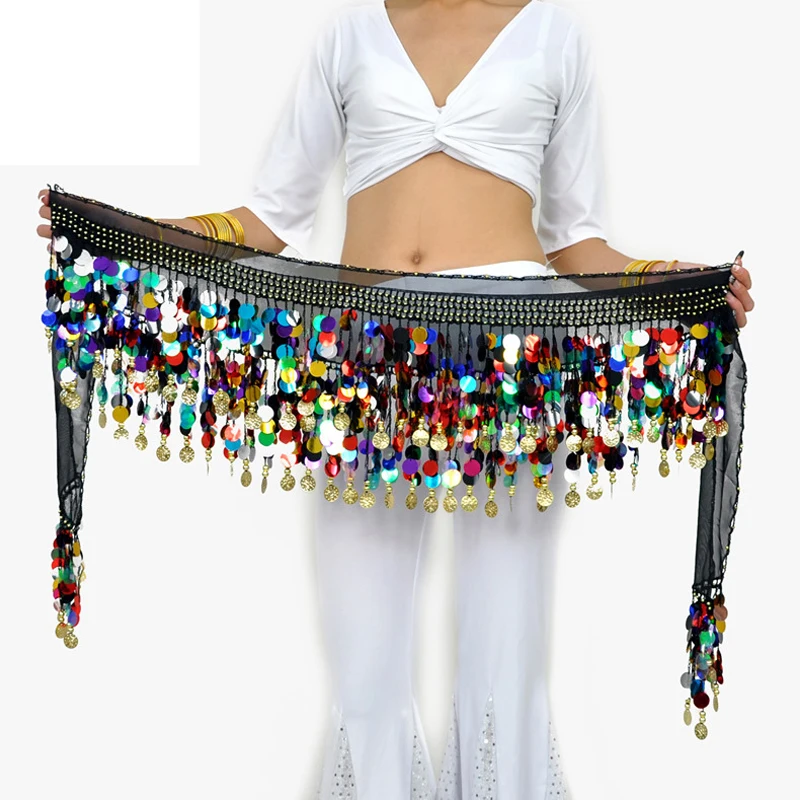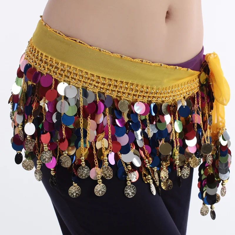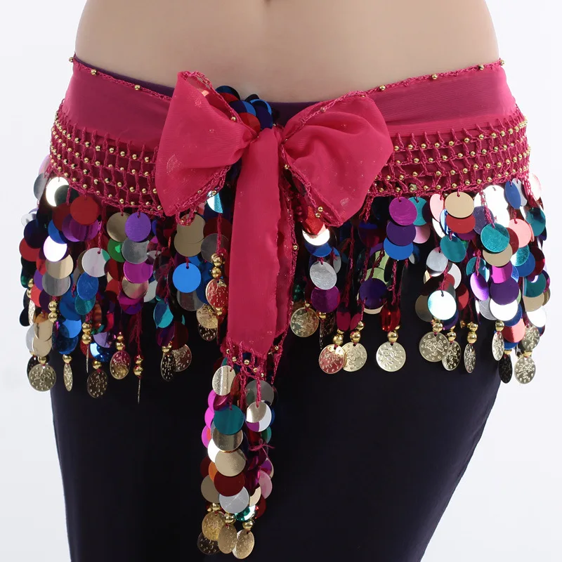 Женский шифоновый платок для танца живота, Блестящий Пояс для индийских танцев, цепочка на талию, 8 видов цветов
